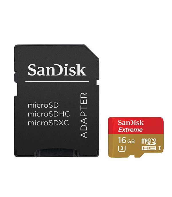 کارت حافظه microSDHC سن دیسک مدل Extreme V30 کلاس A1 استاندارد UHS-I U3 سرعت 60MBps همراه با آداپتور SD ظرفیت 16 گیگابایت