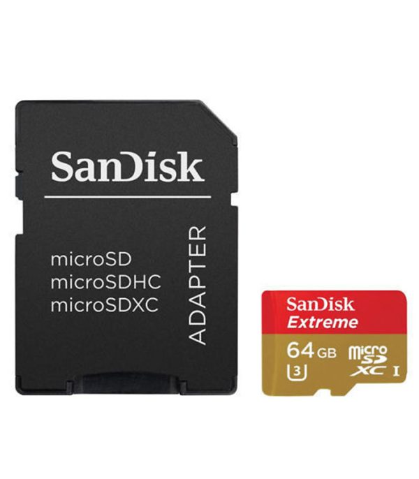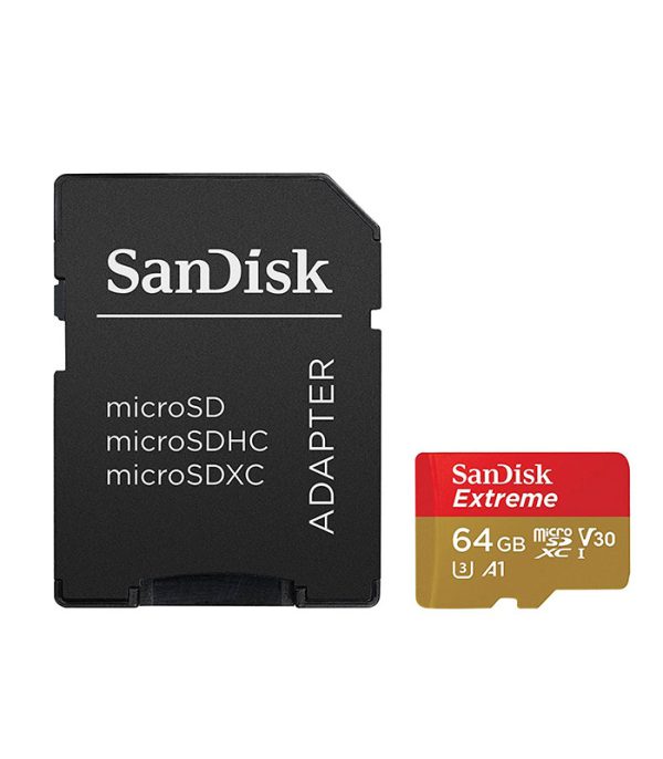 کارت حافظه microSDXC سن دیسک مدل Extreme V30 کلاس A1 استاندارد UHS-I U3 سرعت 100MBps 667X همراه با آداپتور SD ظرفیت 64 گیگابایت