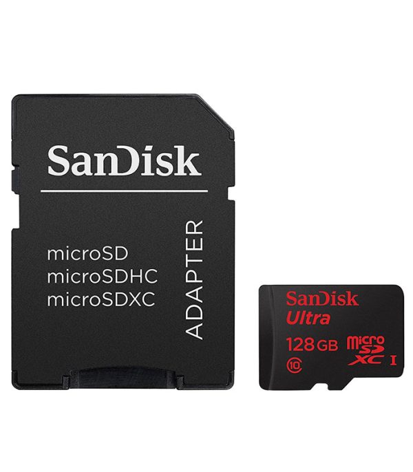 کارت حافظه microSDXC سن دیسک مدل Ultra کلاس10 و A1 استاندارد UHS-I U1 سرعت 100MBps 667X همراه با آداپتور SD ظرفیت 128 گیگابایت