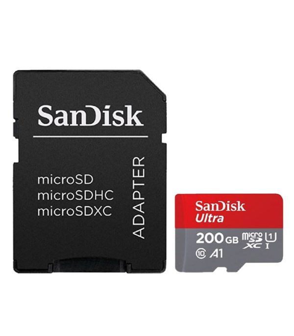 کارت حافظه microSDXC سن دیسک مدل Ultra کلاس 10 و A1 استاندارد UHS-I U1 سرعت 100MBps 667X همراه با آداپتور SD ظرفیت 200 گیگابایت