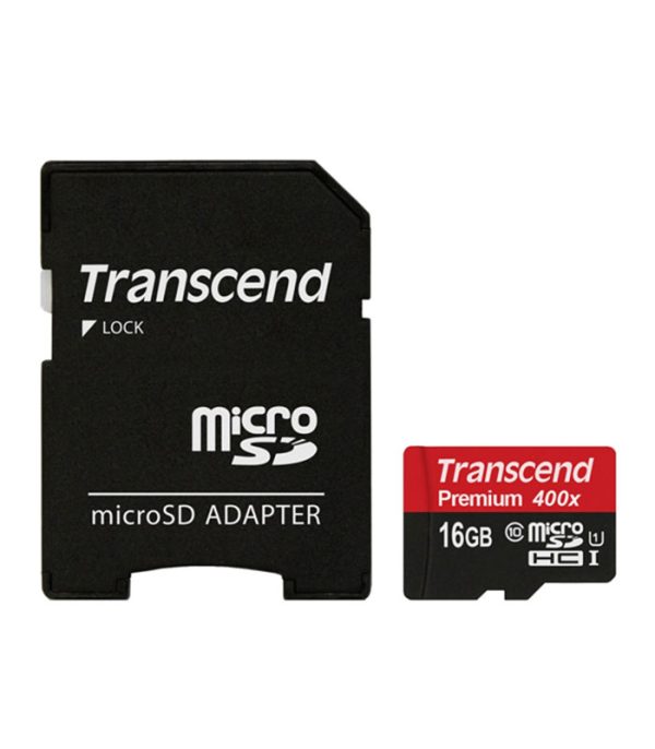 کارت حافظه microSDHC ترنسند مدل Premium کلاس 10 استاندارد UHS-I U1 سرعت 60MBps 400X همراه با آداپتور SD ظرفيت 16 گيگابايت